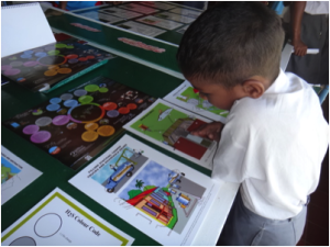 A student of Mana SDA school looking through the materials displayed at Mana Island resorts world water day celebrations